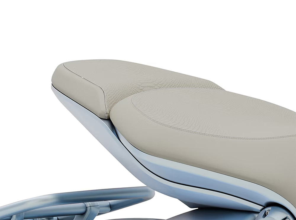Der zusätzliche Soziussitz, der serienmäßig bei jedem Fahrzeug ist, greift das Schlangenmotiv auf, das auch auf dem Fahrersitz und den Griffen zu finden ist. Für ein Erlebnis, das den Mitfahrer ebenso einbezieht wie den Fahrer.